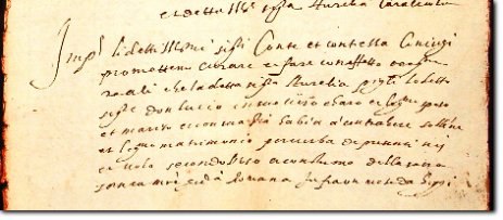 sotto - la carta dotale dei coniugi Aurelia Caracciolo con il barone di San Vito dei Normanni, esempio di come documenti inaspettati possano trovarsi in archivi che a prima vista non hanno interesse.