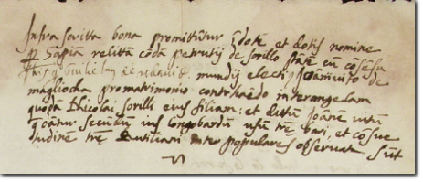 in alto - In alto, l'esempio di una carta dotale del Cinquecento in cui si specifica essere, la stessa, redatta secondo il diritto longobardo, l'uso della Terra di Bari e la consuetudine della Terra di Rutigliano fra popolari.